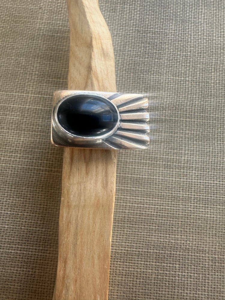 Solid cast bronze ring with black Onyx and fine silver bezel