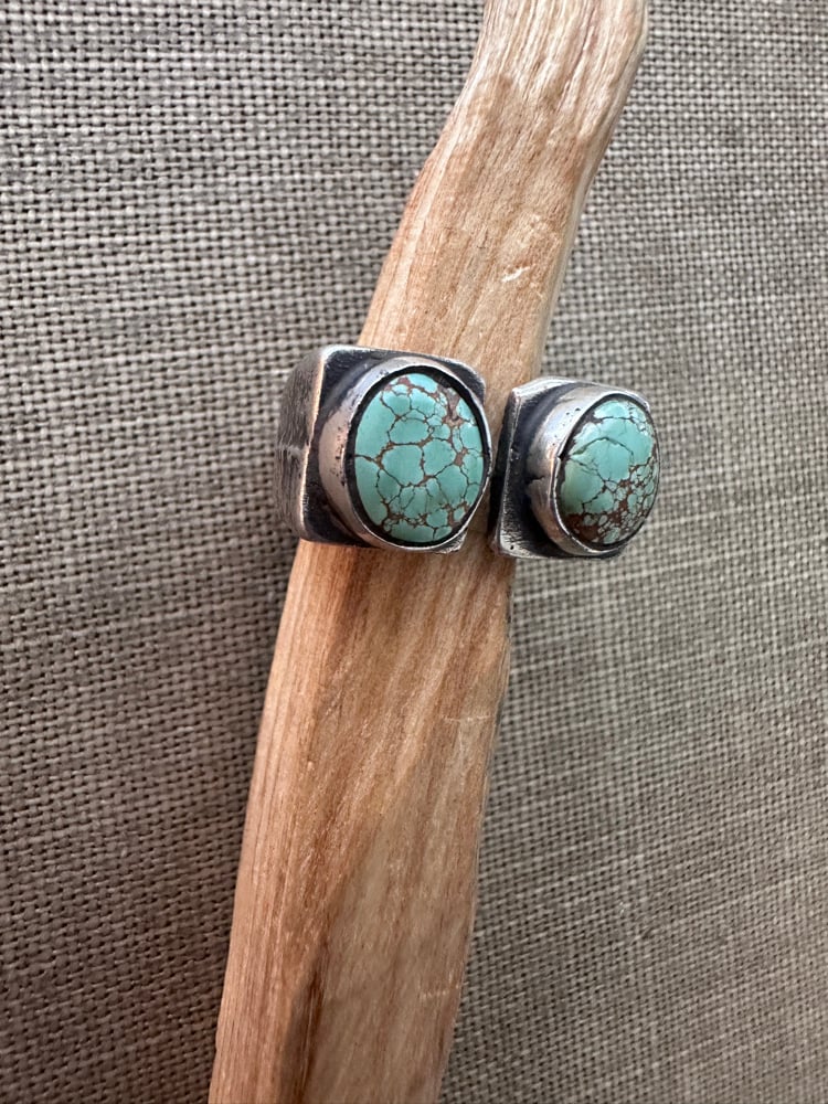 Beautiful Natyral Royston split style ring in a cast sterling silver setting