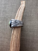 Gorgeous Sonoran Gold turquoise in a solid cast sterling setting. Split double ring style this ring is somewhat adjustable from size 6 to 7.5