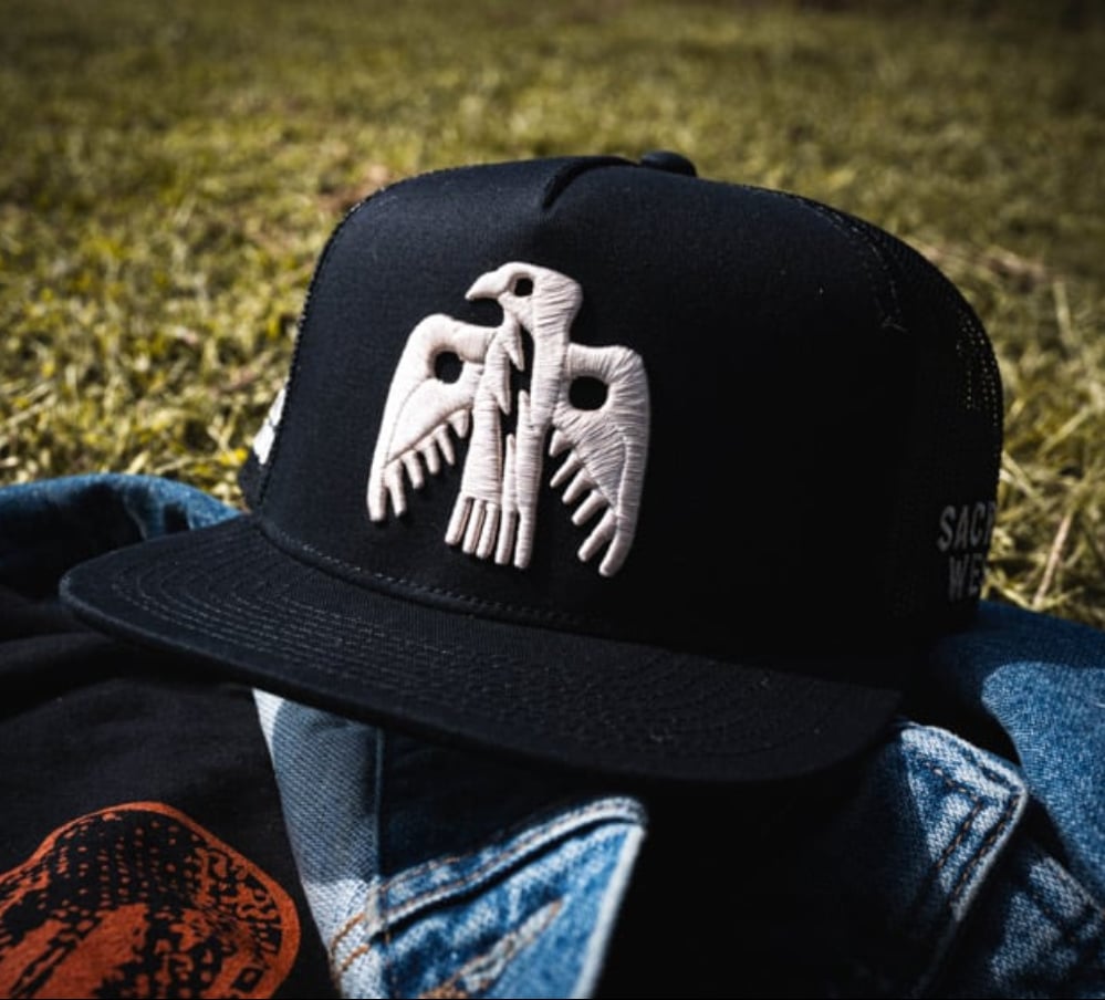 High quality full branding Sacred West Thunderbird trucker hat with heavy stiched logos. Adjustable and awesome